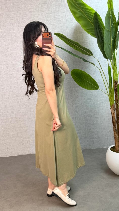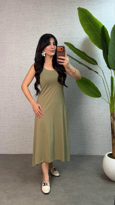 Kadın Askılı Yuvarlak Yaka Süprem Kumaş Elbise Modelin Ölçüleri: Boy:165, Kg:55, Göğüs:90, Bel:72, Kalça: 100 Modelin üzerindeki ürün M/38 bedendir