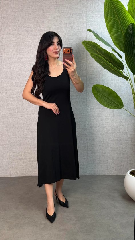 Kadın Askılı Yuvarlak Yaka Süprem Kumaş Elbise