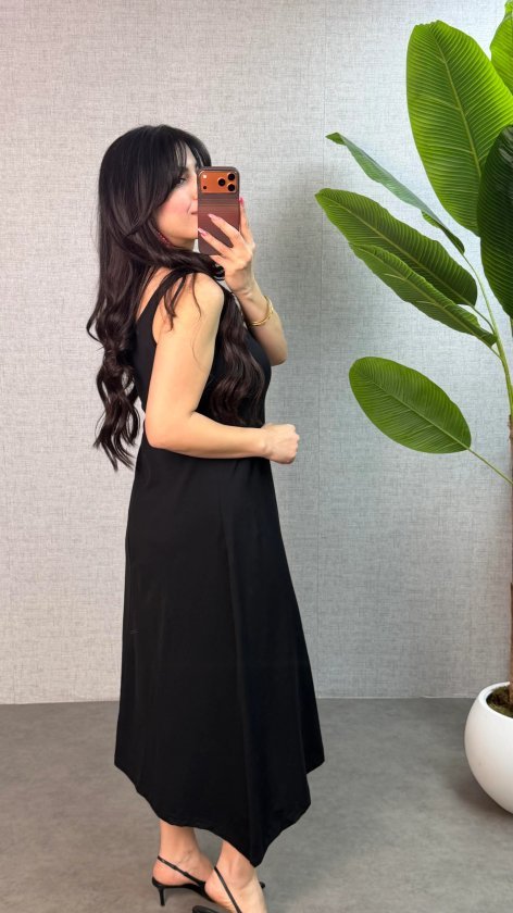 Kadın Askılı Yuvarlak Yaka Süprem Kumaş Elbise Modelin Ölçüleri: Boy:165, Kg:55, Göğüs:90, Bel:72, Kalça: 100 Modelin üzerindeki ürün M/38 bedendir
