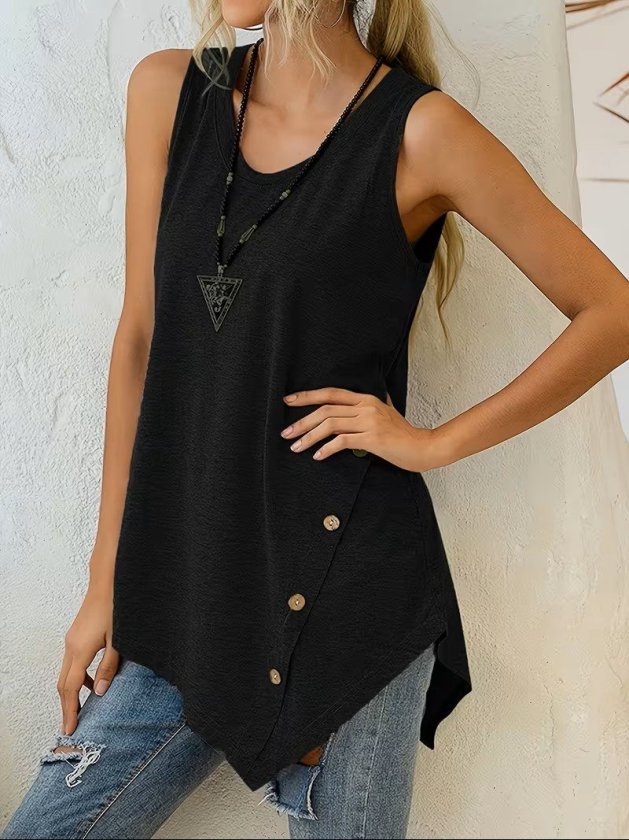 Kadın Askılı Yuvarlak Yakalı Asimetrik Kesim Detaylı Viskon Bluz Modelin Ölçüleri: Boy:165, Kg:55, Göğüs:90, Bel:72, Kalça: 100 Modelin üzerindeki ürün M/38 bedendir DESEN-DiğerleriKALIP-Askılı