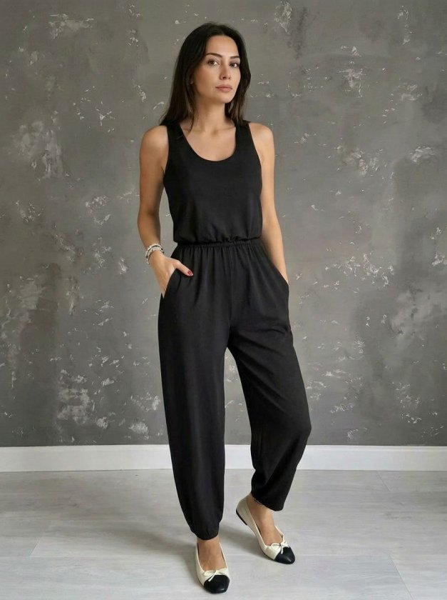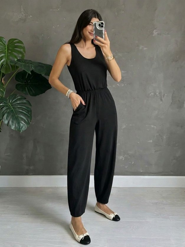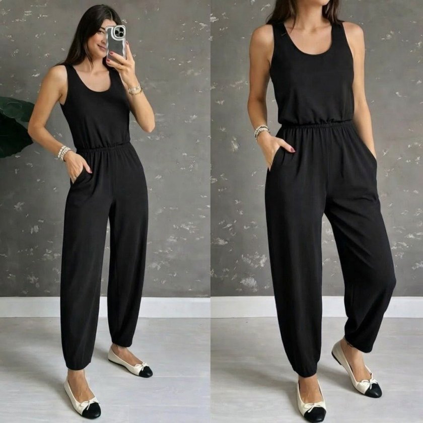 Kadın Askılı Yuvarlak Yakalı Cepli Viskon Tulum Modelin Ölçüleri: Boy:165, Kg:55, Göğüs:90, Bel:72, Kalça: 100 Modelin üzerindeki ürün M/38 bedendir YAKA-DiğerleriBACAK BOYU-UzunKOL UZUNLUK-Kolsuz