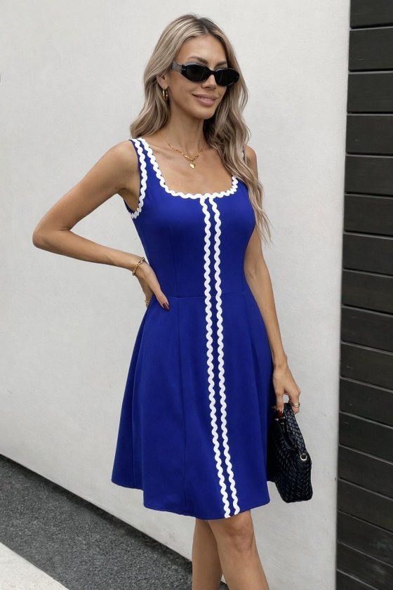 Kadın Askılı Yuvarlak Yakalı şerit Desenli Kısa Kiloş Elbise