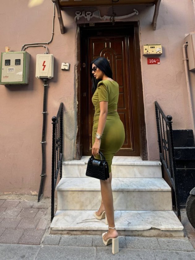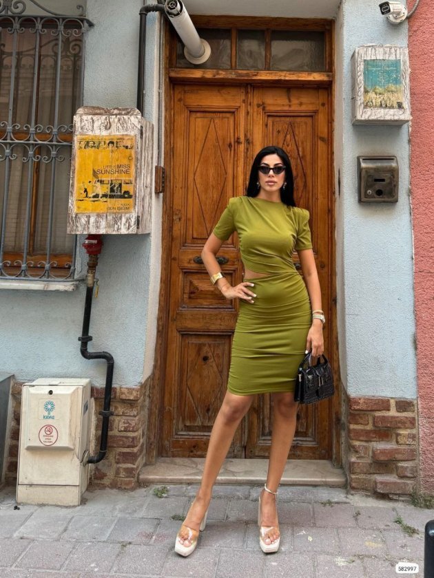 Kadın Bel Dekolteli Yanı Büzgü Detay Dalgıç Krep Kumaş Mini Elbise Modelin Ölçüleri: Boy:165, Kg:55, Göğüs:90, Bel:72, Kalça: 100 Modelin üzerindeki ürün M/38 bedendir