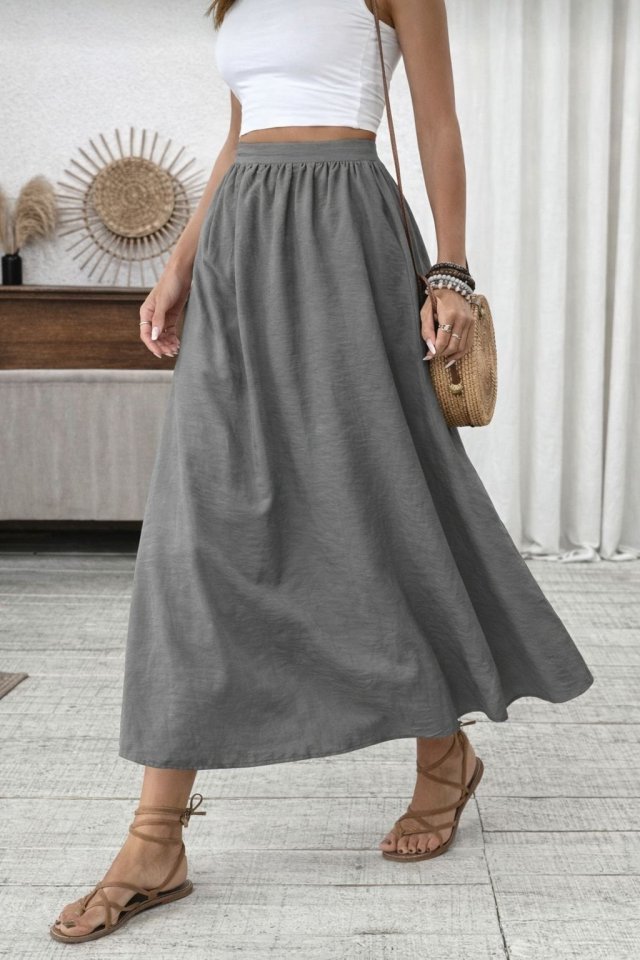 Kadın Beli Lastikli Paraşüt Kumaş Etek