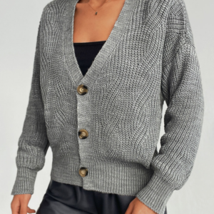 Kadın Uzun Kollu Düğme Detay Triko Hırka