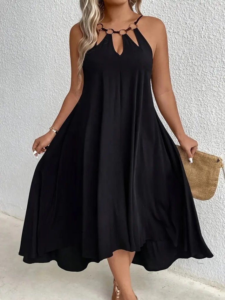 Kadın Boyundan Askılı Damla Detaylı Halkalı Asimetrik Kesim Viskon Elbise Modelin Ölçüleri: Boy:165, Kg:55, Göğüs:90, Bel:72, Kalça: 100 Modelin üzerindeki ürün M/38 bedendir TARZ-DiğerleriYAKA-DiğerleriDESEN-DiğerleriKOL UZUNLUK-KolsuzUZUNLUK-DiğerleriEK OZELLIKLER-Boş/Ek özellik YokKALIP-DigerTARZ-Diger