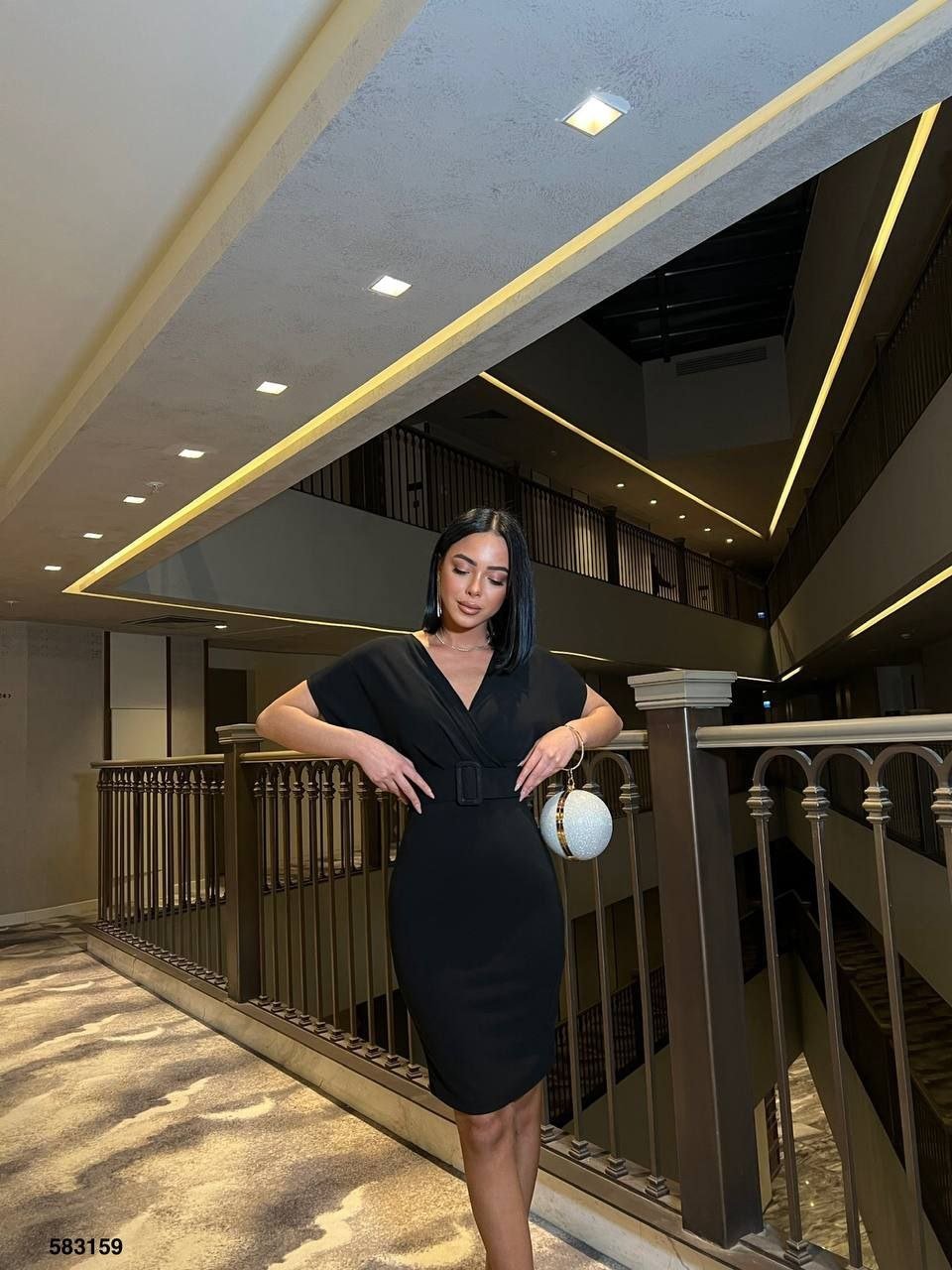 Kadın Dalgıç Krep V Yaka Ve Sırt Dekolte Detaylı Elbise Modelin Ölçüleri: Boy:165, Kg:55, Göğüs:90, Bel:72, Kalça: 100 Modelin üzerindeki ürün M/38 bedendir