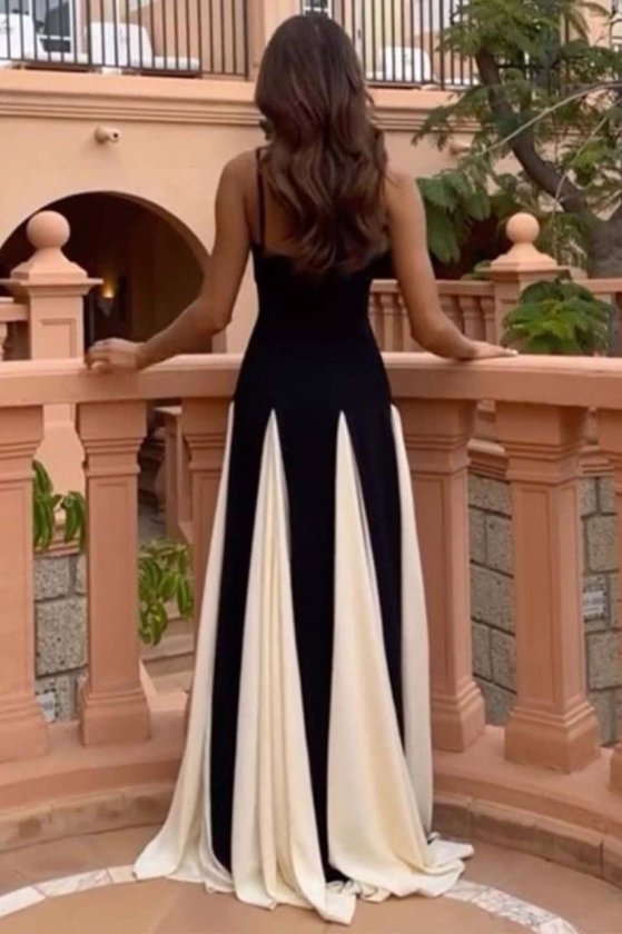 Kadın Askılı Geniş V Yakalı Sırttan Bağlamalı Yırtmaçlı Süprem Elbise