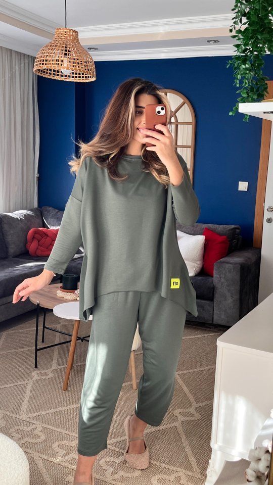 Kadın Iki Iplik Viskon Pamuk Kumaş Arma Detaylı Ikili Takım Modelin Ölçüleri: Boy:165, Kg:55, Göğüs:90, Bel:72, Kalça: 100 Modelin üzerindeki ürün M/38 bedendir KOL UZUNLUK-Uzun KolTAKIM OZELLIK-Pantolonlu Takım