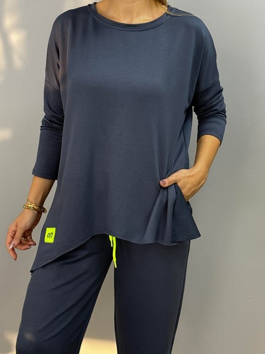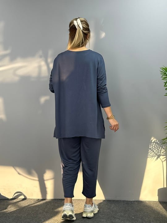 Kadın Iki Iplik Viskon Pamuk Kumaş Arma Detaylı Ikili Takım Modelin Ölçüleri: Boy:165, Kg:55, Göğüs:90, Bel:72, Kalça: 100 Modelin üzerindeki ürün M/38 bedendir KOL UZUNLUK-Uzun KolTAKIM OZELLIK-Pantolonlu Takım