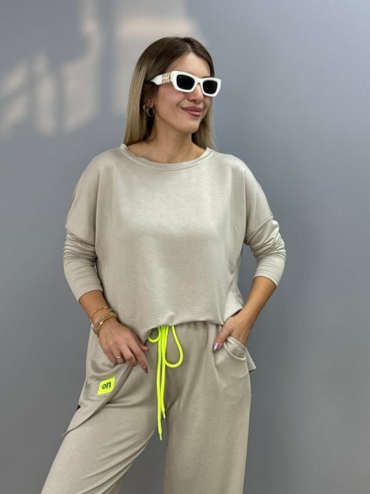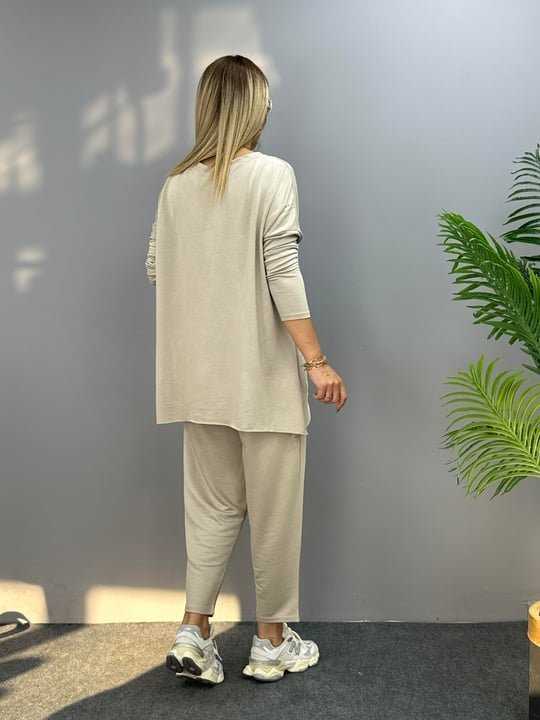 Kadın Iki Iplik Viskon Pamuk Kumaş Arma Detaylı Ikili Takım Modelin Ölçüleri: Boy:165, Kg:55, Göğüs:90, Bel:72, Kalça: 100 Modelin üzerindeki ürün M/38 bedendir KOL UZUNLUK-Uzun KolTAKIM OZELLIK-Pantolonlu Takım