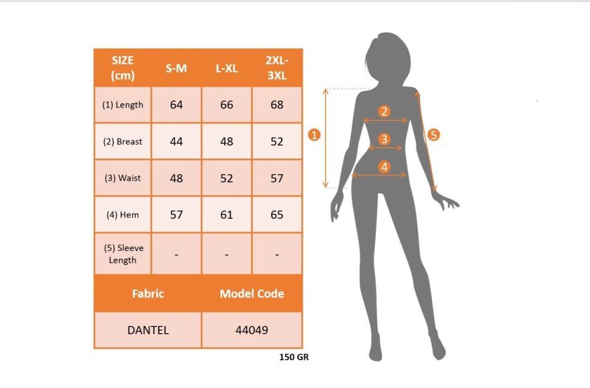 Modelin Ölçüleri: Boy:165, Kg:55, Göğüs:90, Bel:72, Kalça: 100