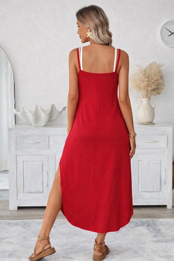 Kadın Ip Askılı Yuvarlak Yakalı Cepli Uzun Viskon Elbise
