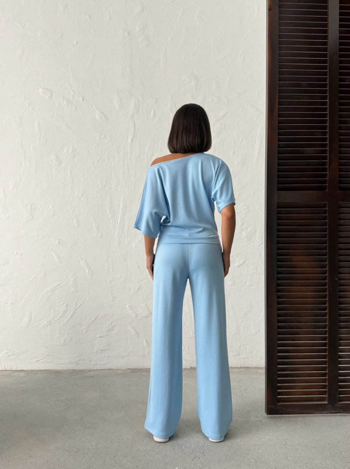 Kadın İsa Kollu Kayık Yaka Bluz Ve Pantolon Misal Kumaş Ikili Takım