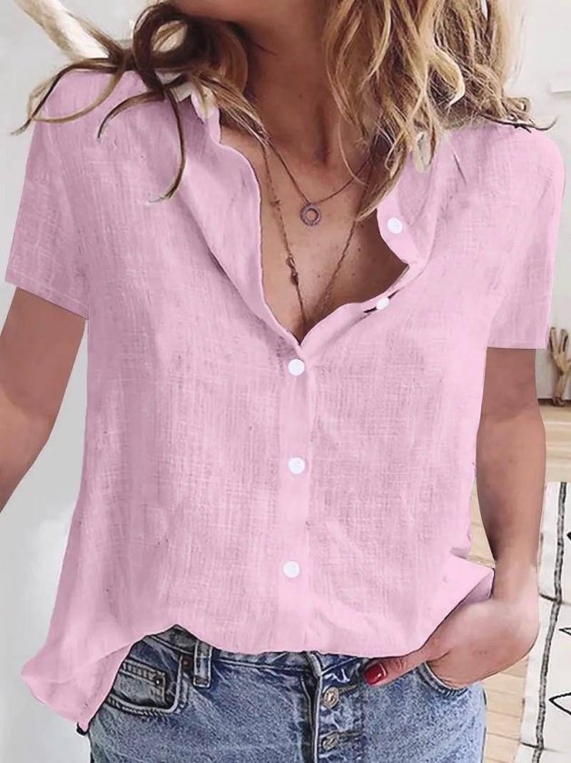 Kadın Kısa Kollu Basic Keten Gömlek