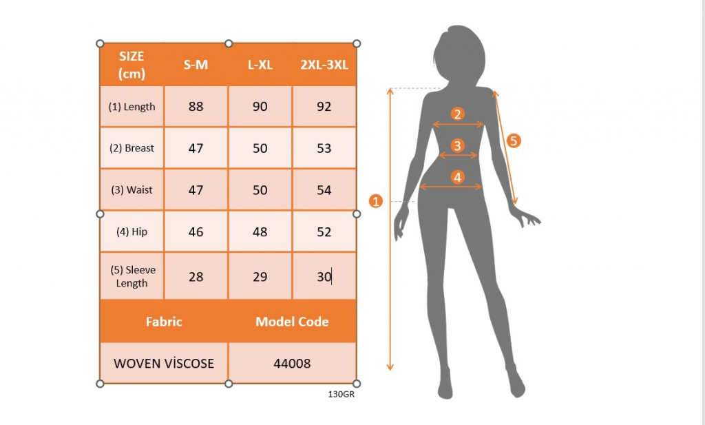 Modelin Ölçüleri: Boy:165, Kg:55, Göğüs:90, Bel:72, Kalça: 100