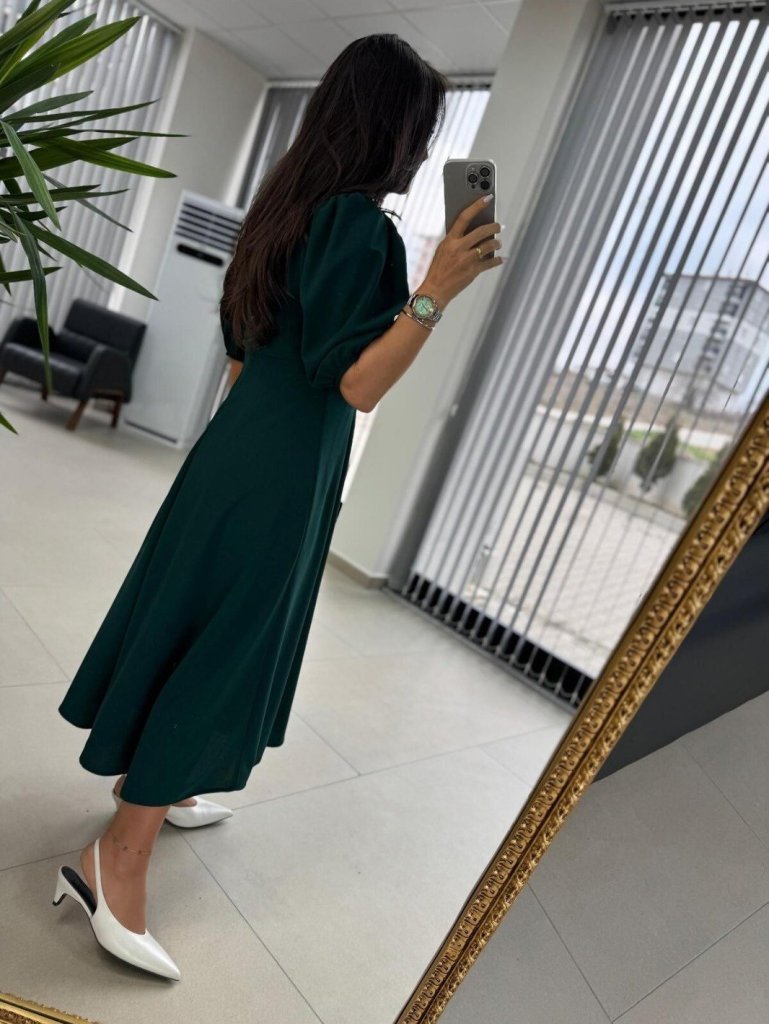 Kadın Kısa Kollu V Yaka Ve Yaka Ribana Detay Midiboy Viskon Elbise