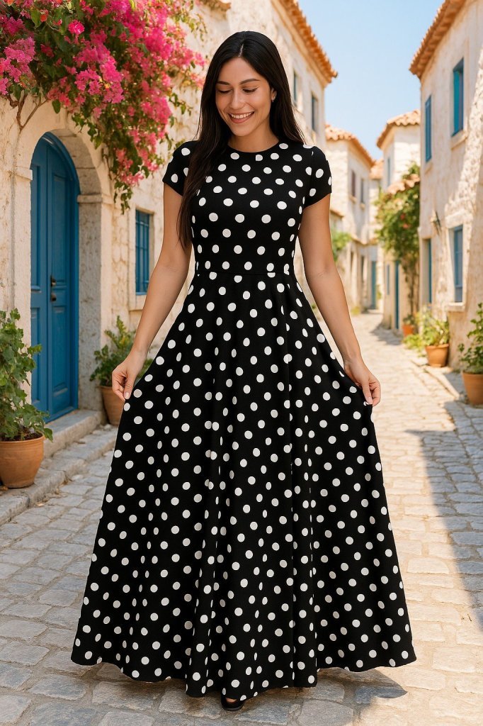 Kadın Kısa Kollu Bisiklet Yaka Puantiyeli Maksi örme Krep Elbise Modelin Ölçüleri: Boy:165, Kg:55, Göğüs:90, Bel:72, Kalça: 100 Modelin üzerindeki ürün M/38 bedendir TARZ-DiğerleriYAKA-DiğerleriDESEN-DiğerleriKOL UZUNLUK-DiğerleriUZUNLUK-DiğerleriEK OZELLIKLER-Boş/Ek özellik YokKALIP-DigerTARZ-DigerKAPATMA TURU-Kancali