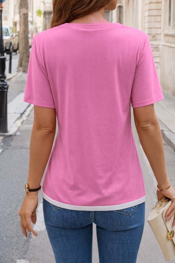 Kadın Kısa Kollu Bisiklet Yaka Viskon Bluz