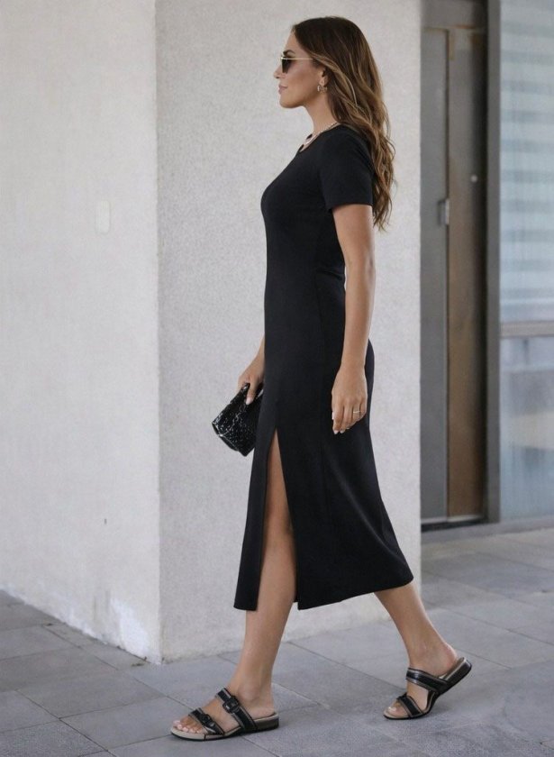 Kadın Kısa Kollu Bisiklet Yaka Yandan Yırtmaçlı Midi Viskon Elbise Modelin Ölçüleri: Boy:165, Kg:55, Göğüs:90, Bel:72, Kalça: 100 Modelin üzerindeki ürün M/38 bedendir TARZ-DiğerleriYAKA-Bisiklet/Yuvarlak YakaDESEN-DiğerleriKOL UZUNLUK-Kısa KolUZUNLUK-DiğerleriEK OZELLIKLER-Boş/Ek özellik YokKAPATMA…
