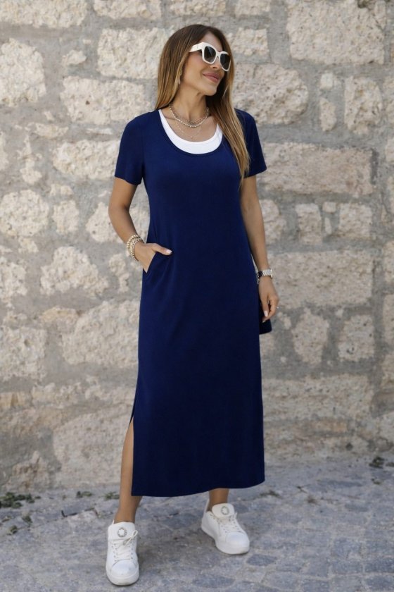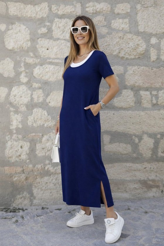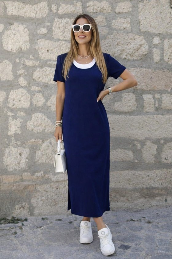 Kadın Kısa Kollu Içi Atlet Görünümlü Yandan Yırtmaçlı Uzun Viskon Elbise