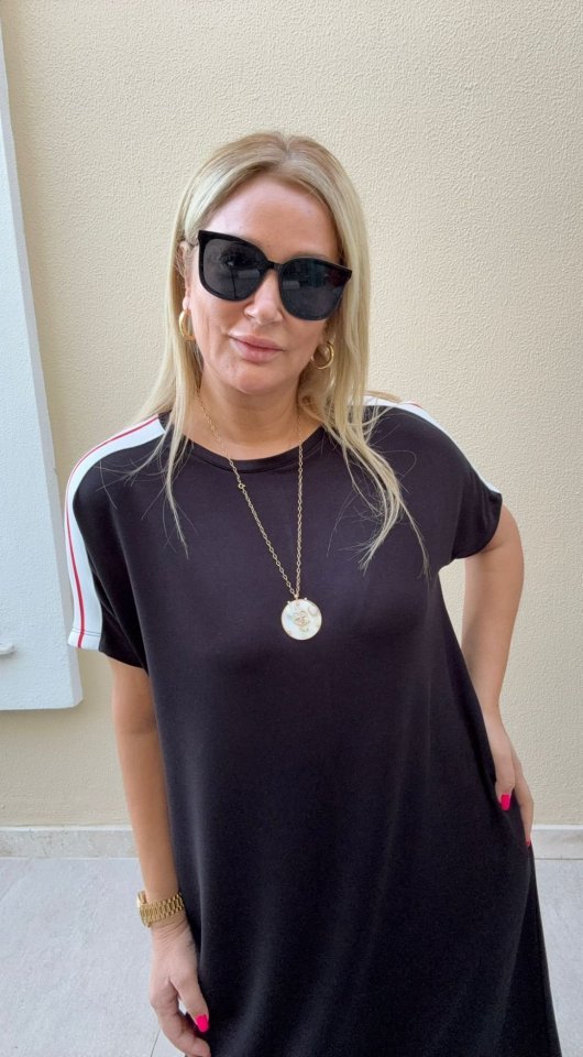 Kadın Kısa Kollu şerit Detay Midi Boy Elbise Modelin Ölçüleri: Boy:165, Kg:55, Göğüs:90, Bel:72, Kalça: 100 Modelin üzerindeki ürün M/38 bedendir