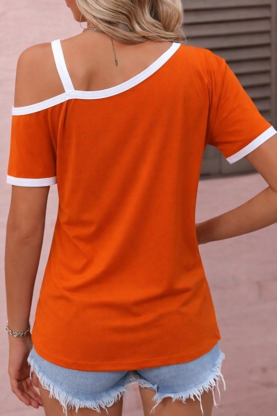 Kadın Kısa Kollu Tek Omuzu Açık Askı Toka Detaylı Viskon Bluz Modelin Ölçüleri: Boy:165, Kg:55, Göğüs:90, Bel:72, Kalça: 100 Modelin üzerindeki ürün M/38 bedendir DESEN-DiğerleriKALIP-Klasik