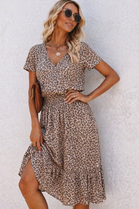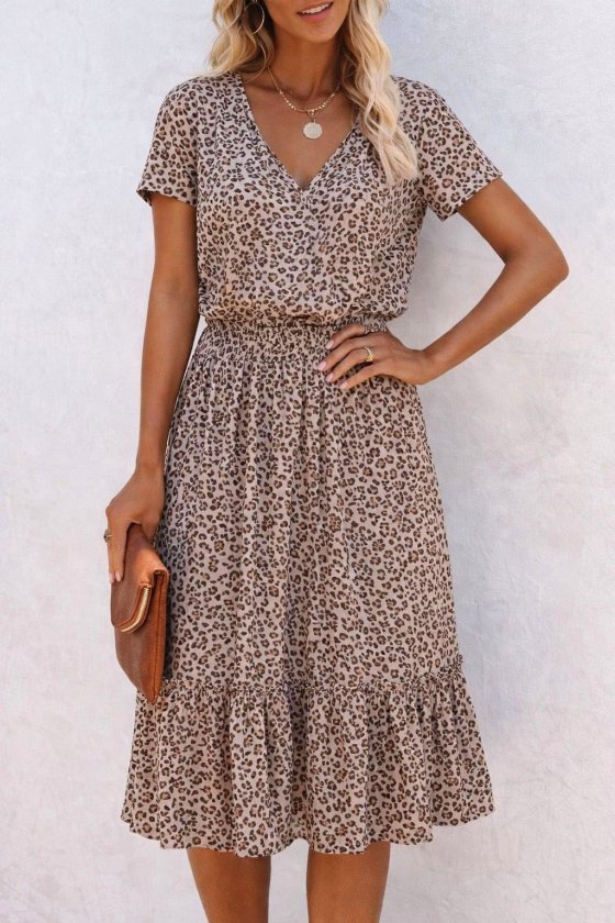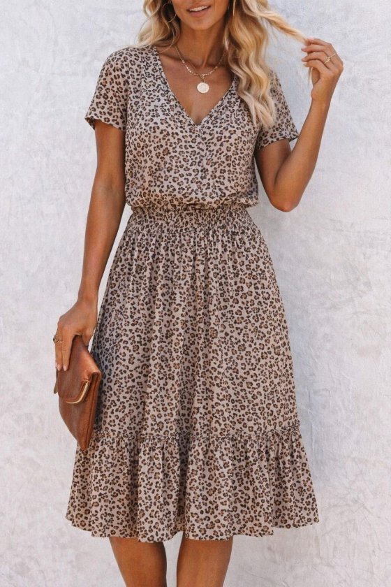 Kadın Kısa Kollu V Yakalı Beli Lastikli Midi Süprem Elbise Modelin Ölçüleri: Boy:165, Kg:55, Göğüs:90, Bel:72, Kalça: 100 Modelin üzerindeki ürün M/38 bedendir