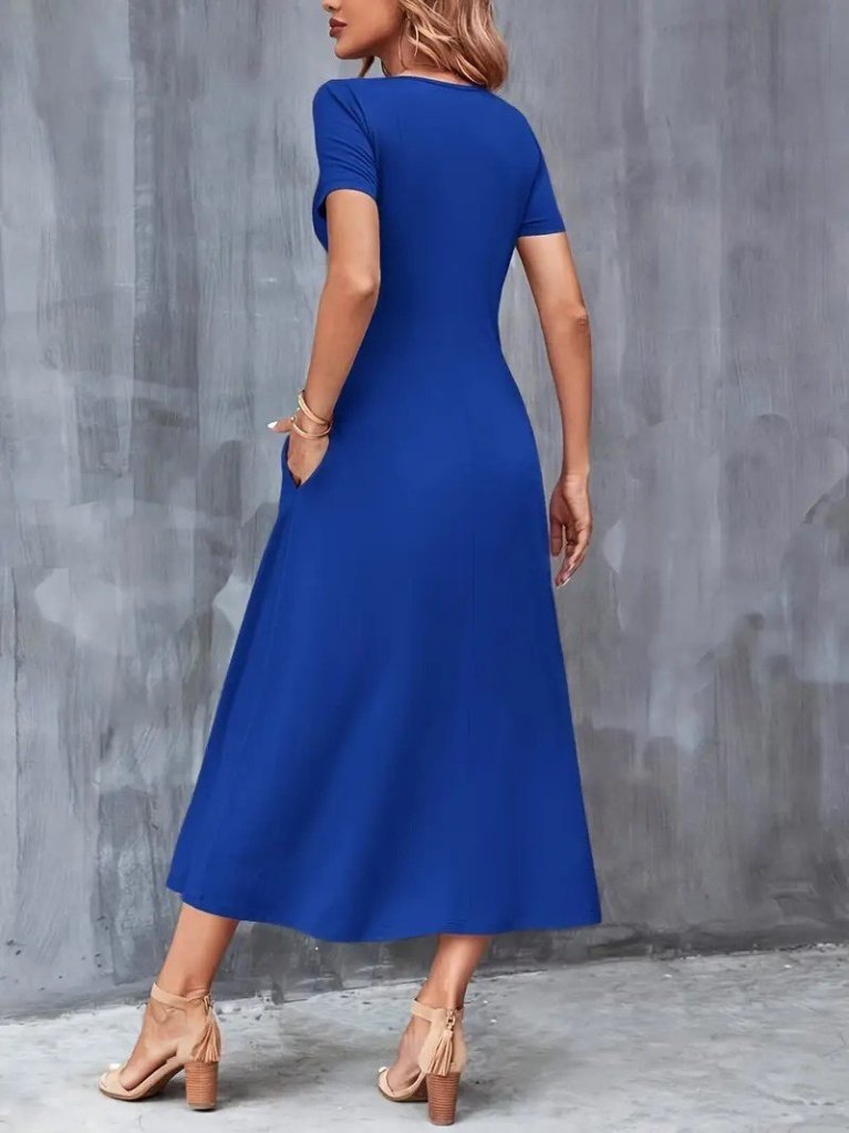 Kadın Kısa Kollu V Yakalı Cepli Viskon Elbise