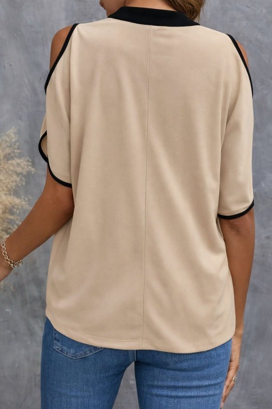 Kadın Kısa Kollu Bisiklet Yaka Kolları Gipeli Ithal Krep Bluz