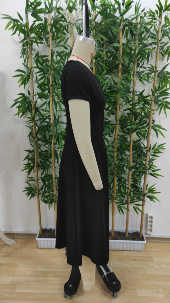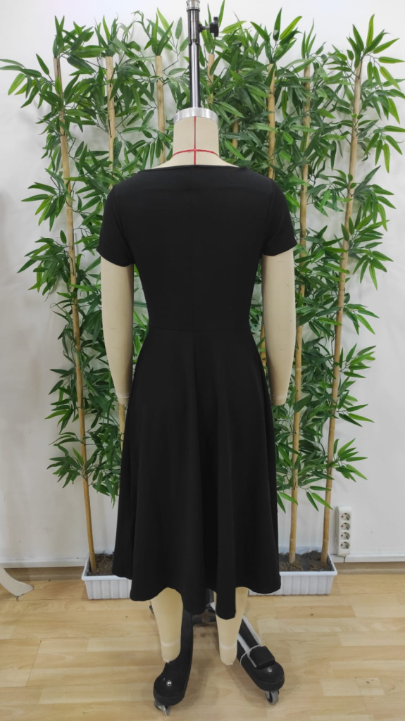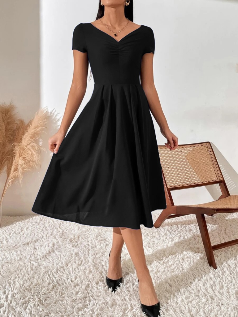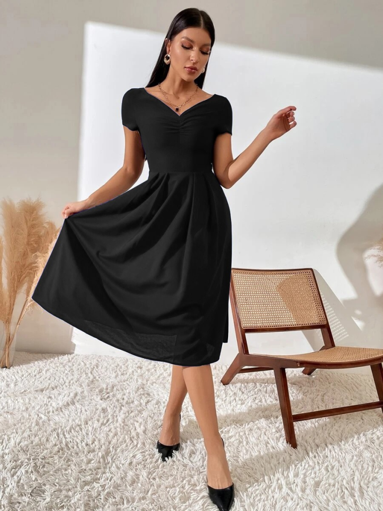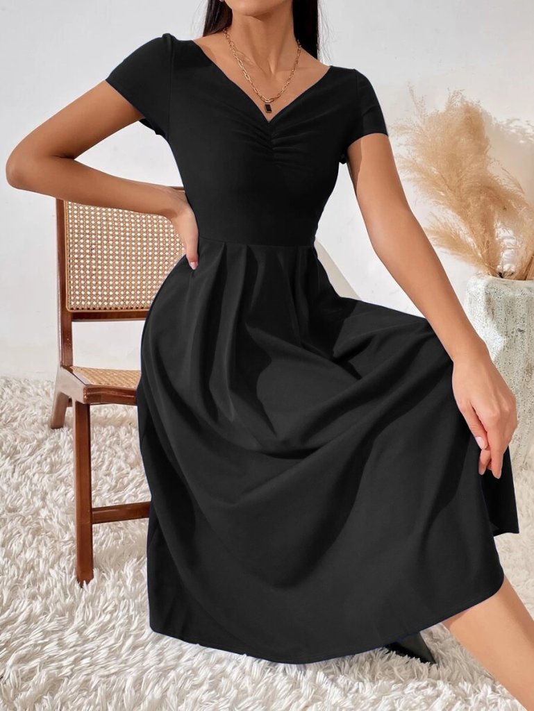 Kadın Kısa Kollu V Yaka Ve Yaka Ribana Detay Midiboy Viskon Elbise