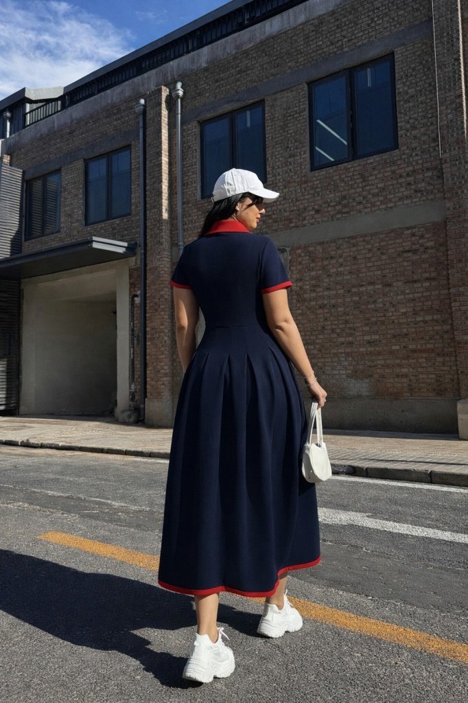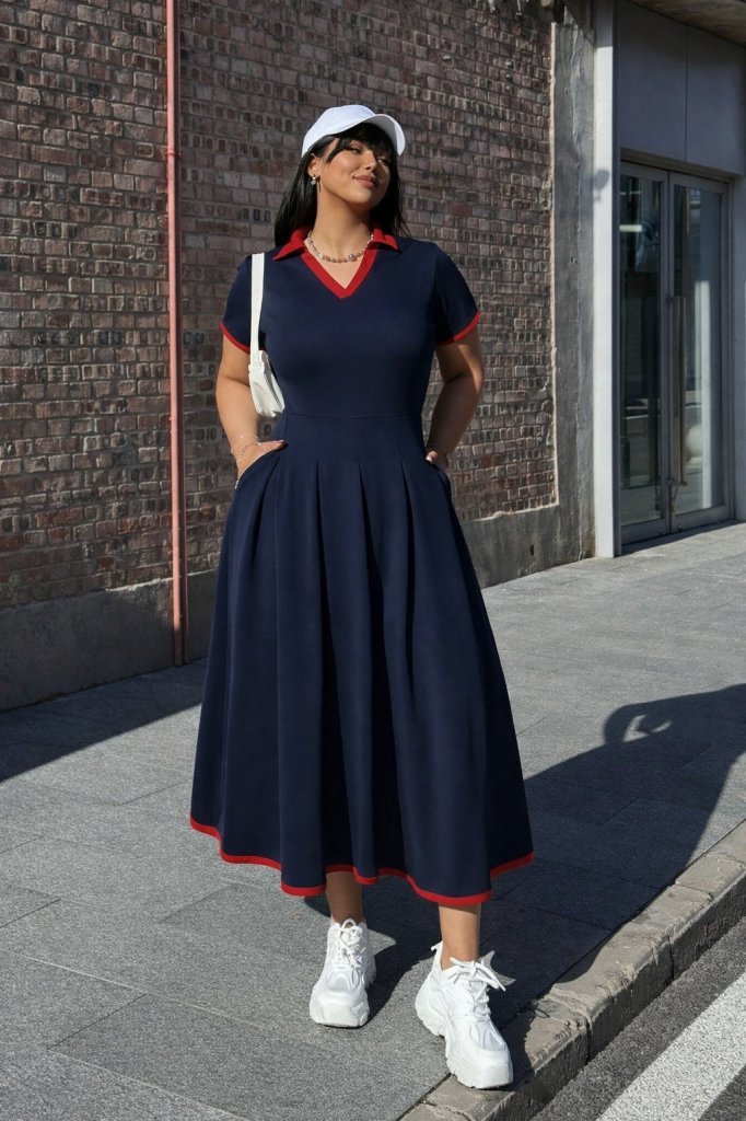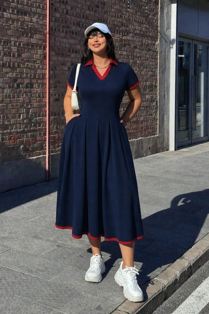 Kadın Kısa Kollu Yakalı önden Düğmeli Kısa Trikoton Elbise