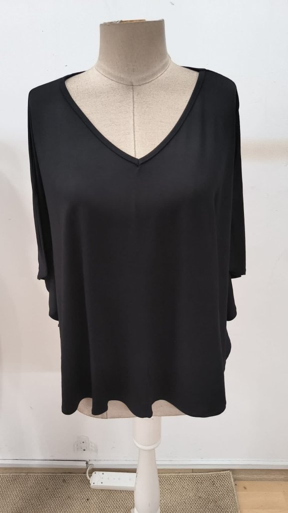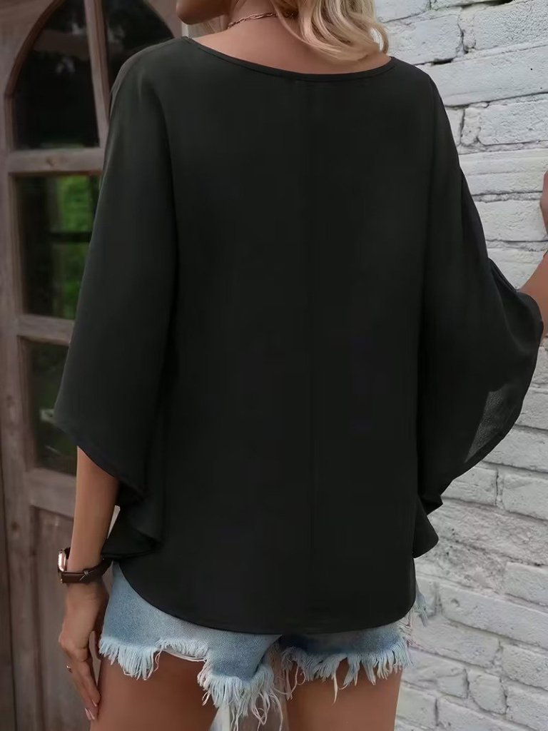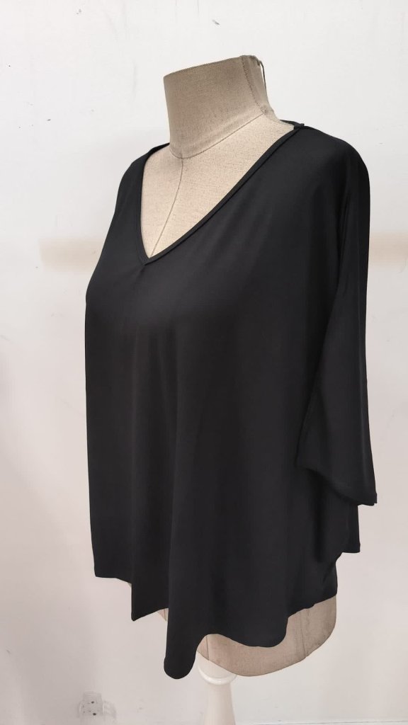 Kadın Kısa Kollu V Yakalı Salaş Viskon Bluz Modelin Ölçüleri: Boy:165, Kg:55, Göğüs:90, Bel:72, Kalça: 100 Modelin üzerindeki ürün M/38 bedendir DESEN-DiğerleriKALIP-Klasik