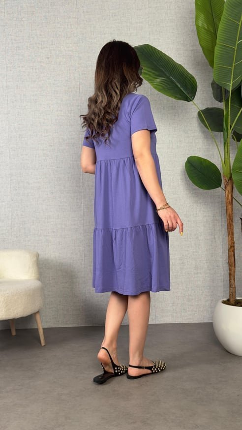 Kadın Kısa Kollu V Yaka Ve Yaka Ribana Detay Midiboy Viskon Elbise