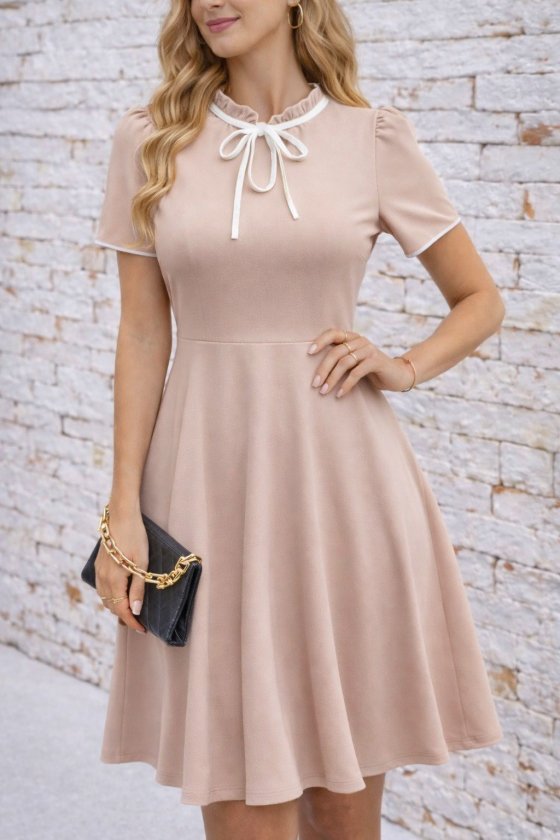 Kadın Kısa Kollu Yakadan Bağcıklı Ve Fırfırlı Midi Janjan Krep Elbise Modelin Ölçüleri: Boy:165, Kg:55, Göğüs:90, Bel:72, Kalça: 100 Modelin üzerindeki ürün M/38 bedendir TARZ-DiğerleriYAKA-DiğerleriDESEN-DiğerleriKOL UZUNLUK-Kısa KolUZUNLUK-DiğerleriEK OZELLIKLER-Boş/Ek özellik YokKALIP-DigerTARZ-DigerKAPATMA…