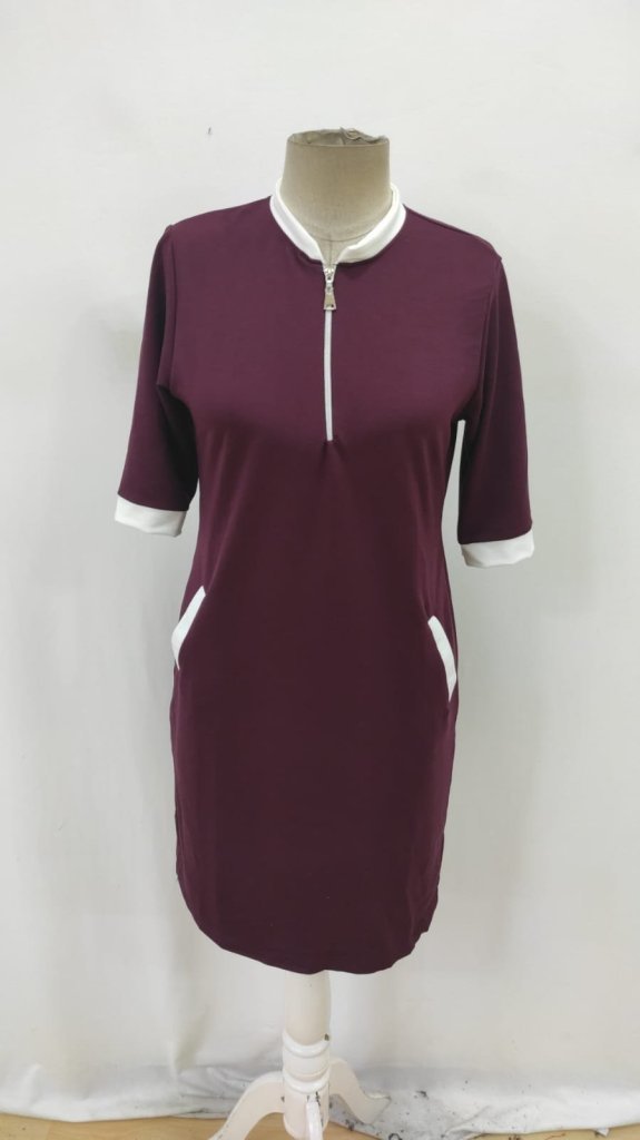 Kadın Kısa Kollu Yakadan Fermuarlı Cepli Yandan Yırtmaçlı Viskon Elbise