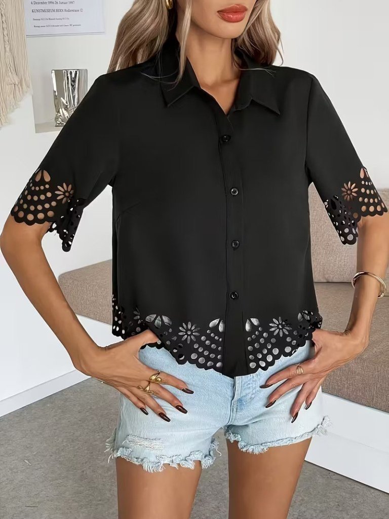 Kadın Kısa Kollu Yakalı önden Düğmeli Dubai Gömlek Bluz