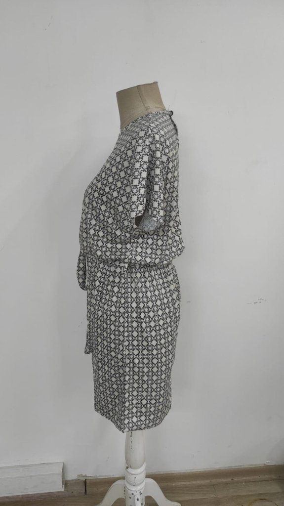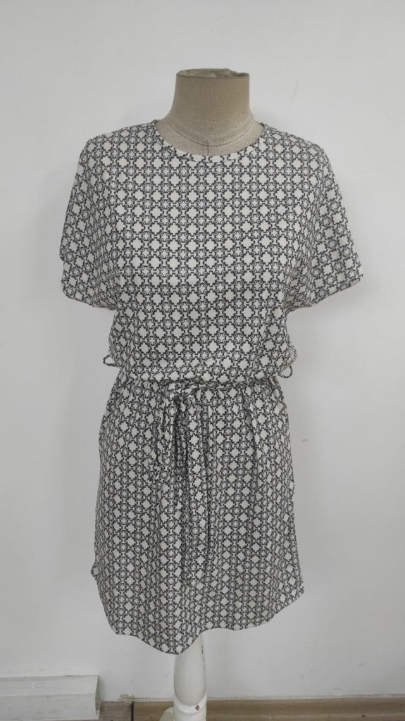 Kadın Kısa Kollu Yuvarlak Yaka Beli Kuşaklı Geometrik Desenli Süprem Elbise Modelin Ölçüleri: Boy:165, Kg:55, Göğüs:90, Bel:72, Kalça: 100 Modelin üzerindeki ürün M/38 bedendir TARZ-DiğerleriDESEN-DiğerleriKOL UZUNLUK-Kısa KolYAKA-Bisiklet/Yuvarlak YakaUZUNLUK-DiğerleriEK OZELLIKLER-Boş/Ek özellik…