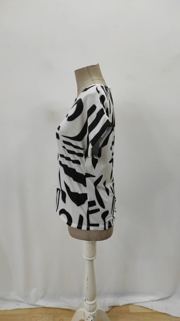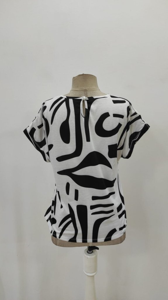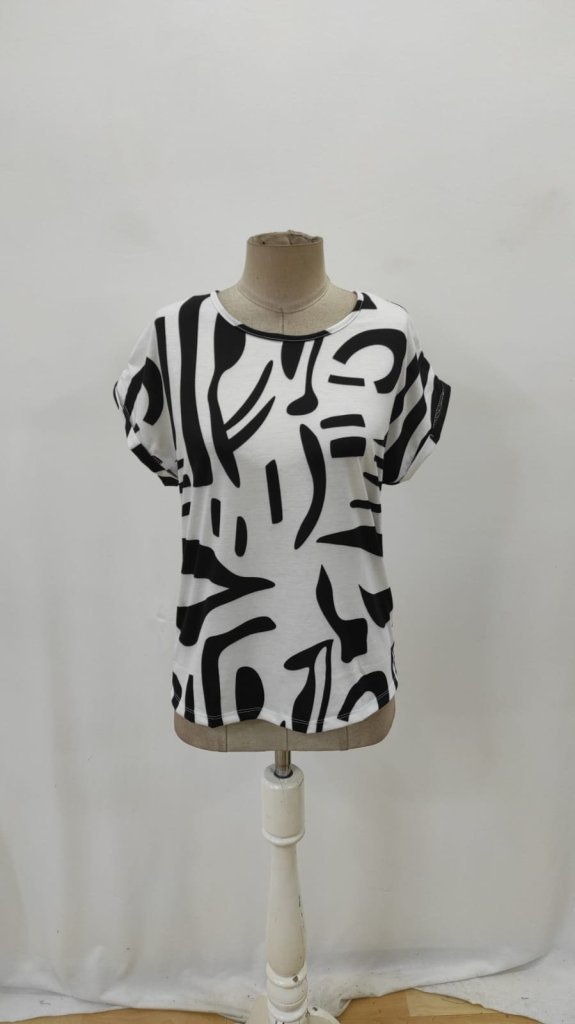Kadın Kısa Kollu Yuvarlak Yaka Desenli Süprem Bluz Modelin Ölçüleri: Boy:165, Kg:55, Göğüs:90, Bel:72, Kalça: 100 Modelin üzerindeki ürün M/38 bedendir DESEN-DiğerleriKALIP-Klasik