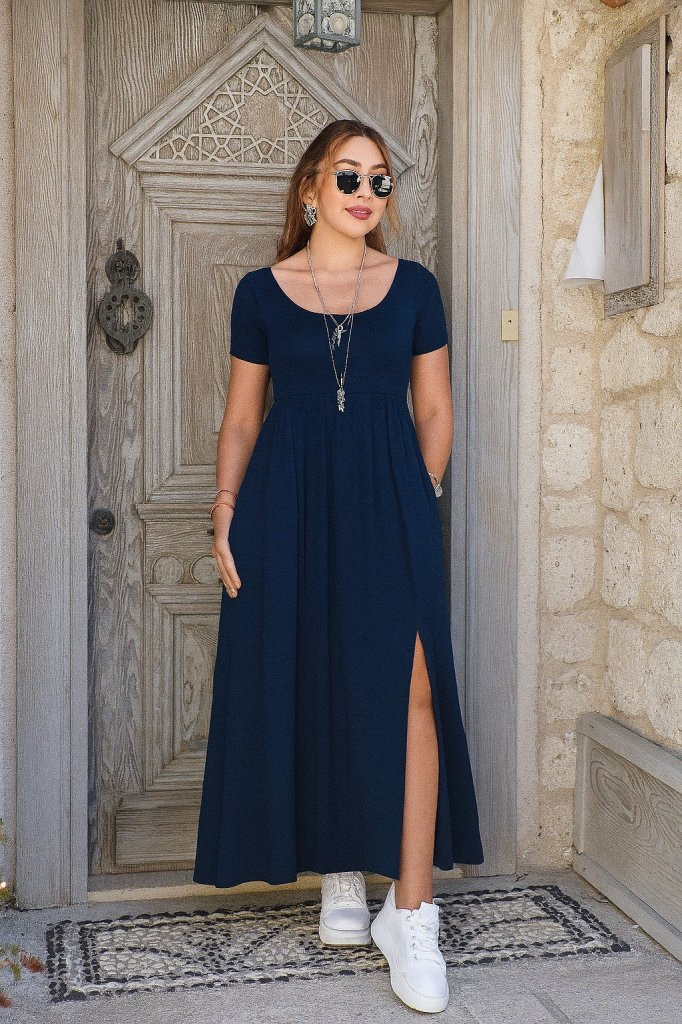 Kadın Kısa Kollu Yuvarlak Yaka önden Yırtmaçlı Cepli Viskon Uzun Elbise Modelin Ölçüleri: Boy:165, Kg:55, Göğüs:90, Bel:72, Kalça: 100 Modelin üzerindeki ürün M/38 bedendir TARZ-DiğerleriYAKA-Bisiklet/Yuvarlak YakaDESEN-DiğerleriKOL UZUNLUK-Kısa KolUZUNLUK-DiğerleriEK OZELLIKLER-Boş/Ek özellik…