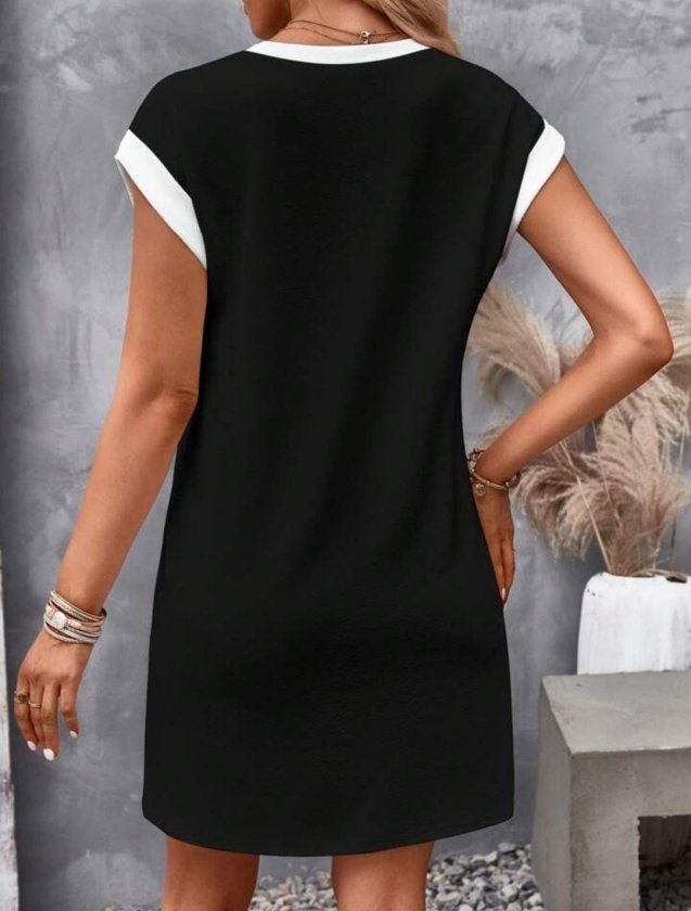 Kadın Kısa Kollu Yuvarlak Yakalı Kontrast Manset Detaylı Kısa Janjan Krep Elbise Modelin Ölçüleri: Boy:165, Kg:55, Göğüs:90, Bel:72, Kalça: 100 Modelin üzerindeki ürün M/38 bedendir TARZ-DiğerleriYAKA-Bisiklet/Yuvarlak YakaDESEN-DiğerleriKOL UZUNLUK-KolsuzUZUNLUK-DiğerleriEK OZELLIKLER-Boş/Ek özellik…