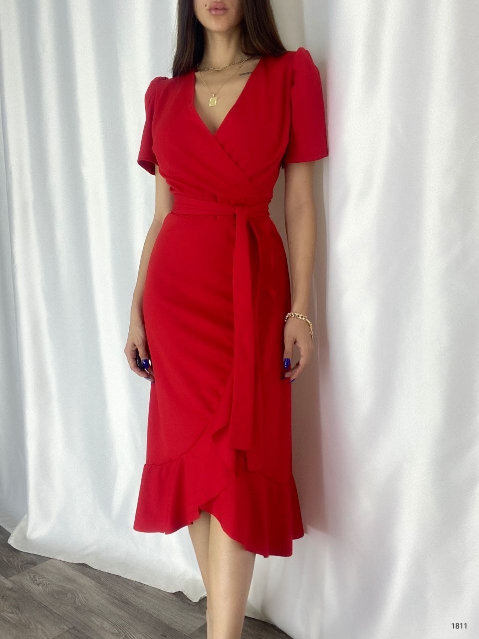 Kadın Kruvaze Yaka Midi Boy Kuşaklı Krep Elbise 120 Cm Modelin Ölçüleri: Boy:165, Kg:55, Göğüs:90, Bel:72, Kalça: 100 Modelin üzerindeki ürün M/38 bedendir EK OZELLIKLER-Eteği FırfırlıKAPATMA TURU-KapanmiyorTARZ-ElegantUZUNLUK-Midi BoyYAKA-KruvazeDESEN-Desensiz/DüzKOL UZUNLUK-Kısa KolTARZ-KokteylKALIP-Düz/Desensiz