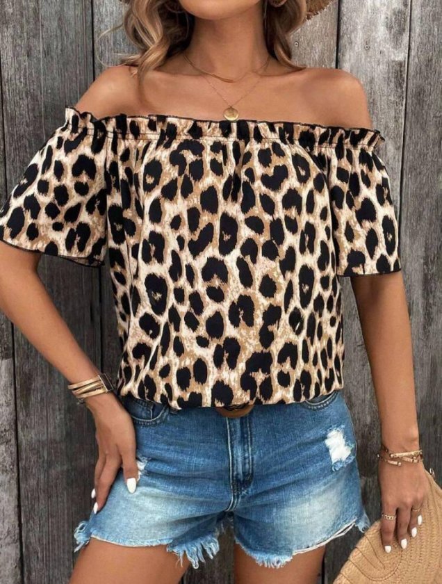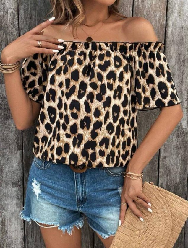 Kadın Madonna Yaka Fırfırlı Leopar Desenli Mikro Kumaş Bluz Modelin Ölçüleri: Boy:165, Kg:55, Göğüs:90, Bel:72, Kalça: 100 Modelin üzerindeki ürün M/38 bedendir