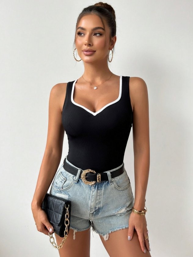 Kadın Siyah Kalp Yaka Beyaz Biyeli Kaşkorse Bluz Atlet Modelin Ölçüleri: Boy:165, Kg:55, Göğüs:90, Bel:72, Kalça: 100 Modelin üzerindeki ürün M/38 bedendir