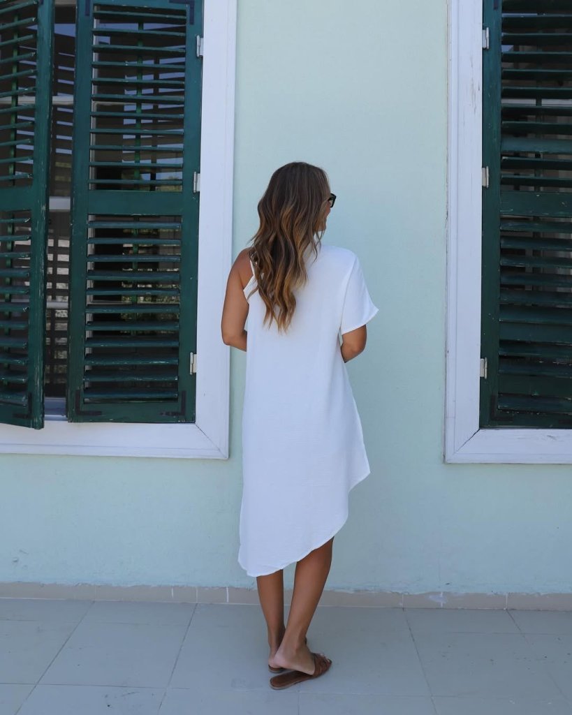 Kadın Kısa Kollu Tek Omuzu Açık Askı Toka Detaylı Viskon Bluz