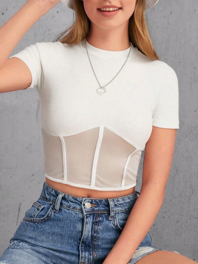 Kadın Transparan Detay Kısa Kol Kaşkorse Bluz Modelin Ölçüleri: Boy:165, Kg:55, Göğüs:90, Bel:72, Kalça: 100 Modelin üzerindeki ürün M/38 bedendir