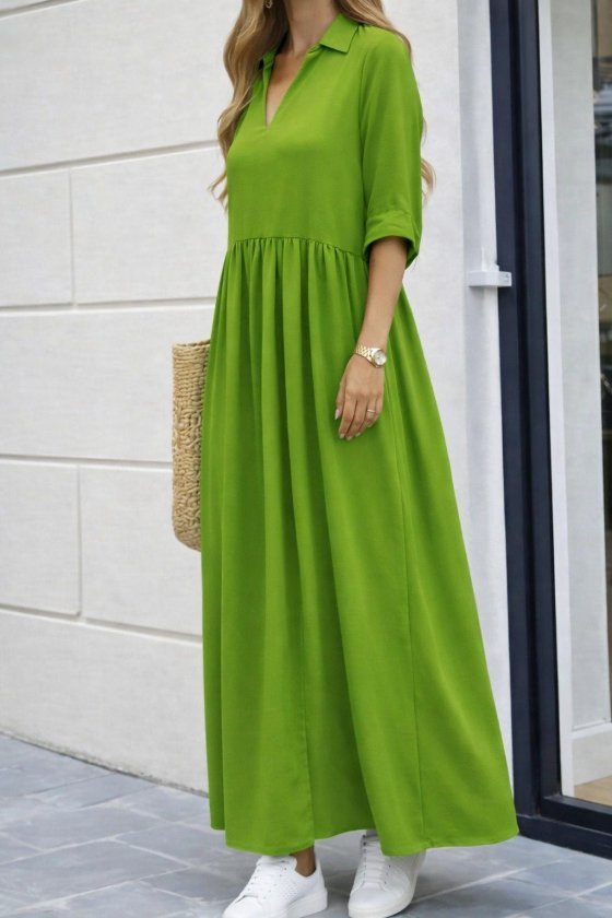Kadın Kısa Kollu V Yaka Ve Yaka Ribana Detay Midiboy Viskon Elbise