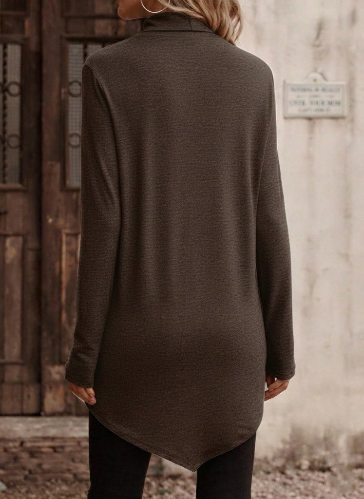 Kadın Uzun Kollu Balıkçı Yaka Asimetrik Kesim Detaylı Yün Viskon Bluz