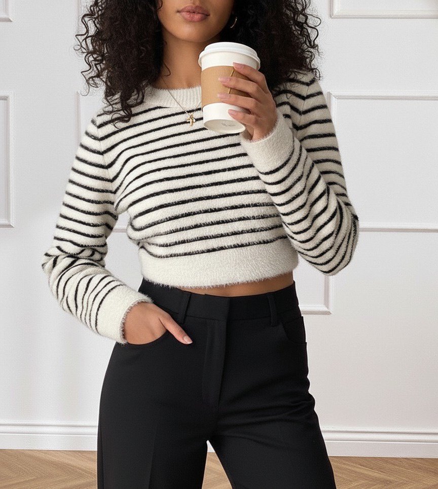 Kadın Uzun Kollu Balıkçı Yaka Crop Triko Bluz Modelin Ölçüleri: Boy:165, Kg:55, Göğüs:90, Bel:72, Kalça: 100 Modelin üzerindeki ürün M/38 bedendir DESEN-DiğerleriKALIP-Düz/Desensiz