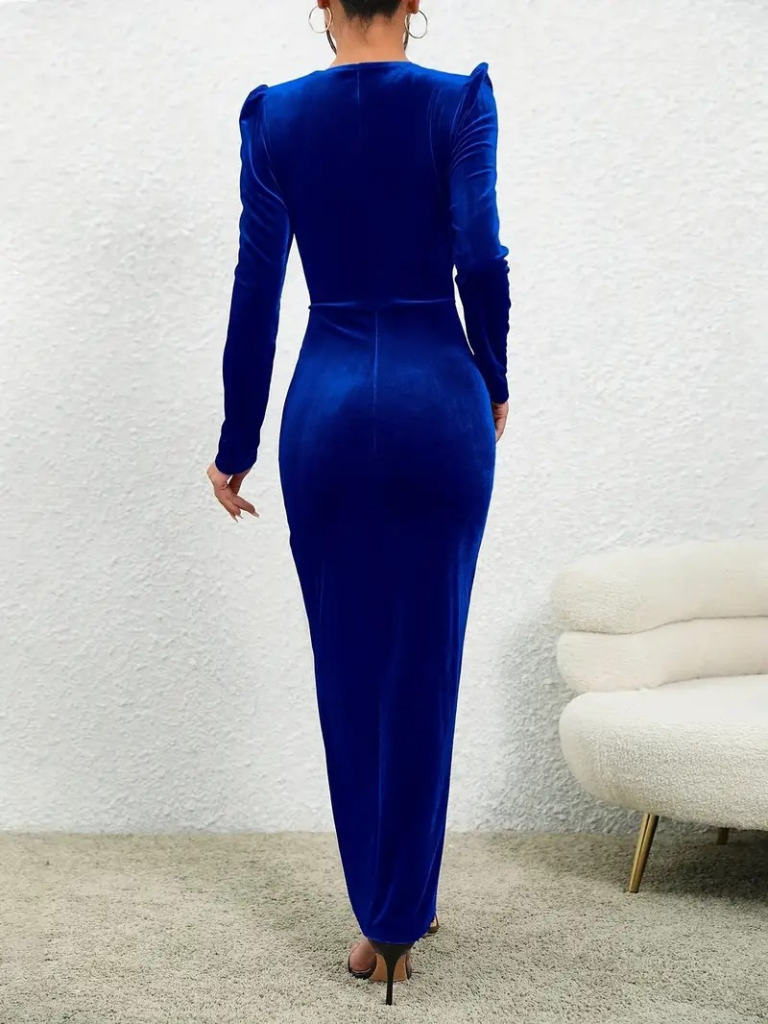 Kadın Askılı Geniş V Yakalı Sırttan Bağlamalı Yırtmaçlı Süprem Elbise